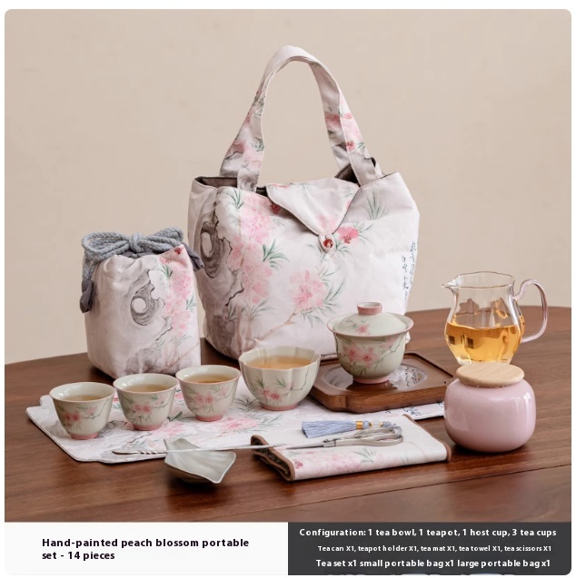 Color classification: hand-painted peach blossom portable suit-14 hand-painted peach blossom portable suit-11 hand-painted peach blossom portable suit-9 hand-painted peach blossom tureen-one pot one Cup hand-painted peach blossom tureen-One Pot Two Cups