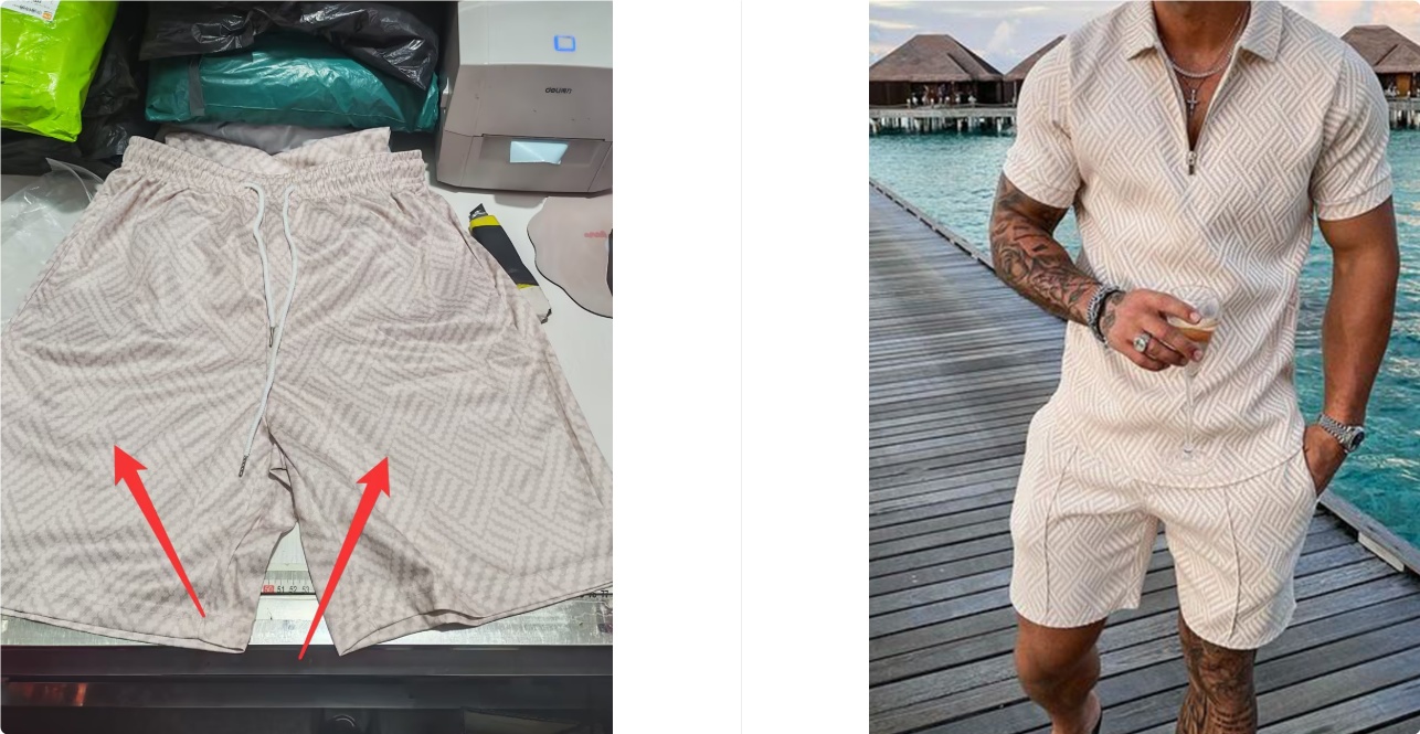 Tips: Most physical zippers are white in color and not the same as the clothing. Additionally, there are no stitching seams in the middle of the physical shorts
